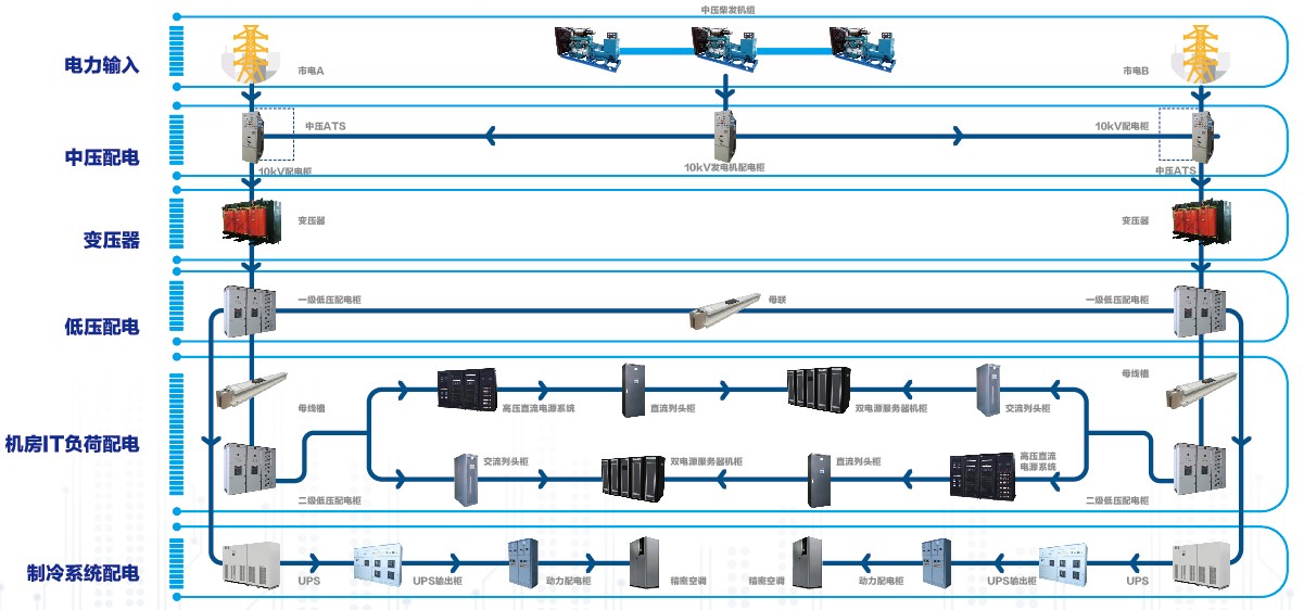 白云電器提供從硬件設(shè)備到監(jiān)控軟件,從中壓到低壓的全系統(tǒng)產(chǎn)品,包括:40.5kV開關(guān)設(shè)備、12kV開關(guān)設(shè)備、變壓器、智能低壓配電設(shè)備、可視化母線槽、精密列頭柜、PSCADA及能源管理系統(tǒng)等,豐富、優(yōu)質(zhì)的產(chǎn)品是數(shù)據(jù)中心綠色、可靠的有效保證。同時(shí),根據(jù)客戶的實(shí)際需求,提供完整、多樣化、定制的供配電系統(tǒng)解決方案,從而為數(shù)據(jù)中心的安全、穩(wěn)定、高效運(yùn)行保駕保航。